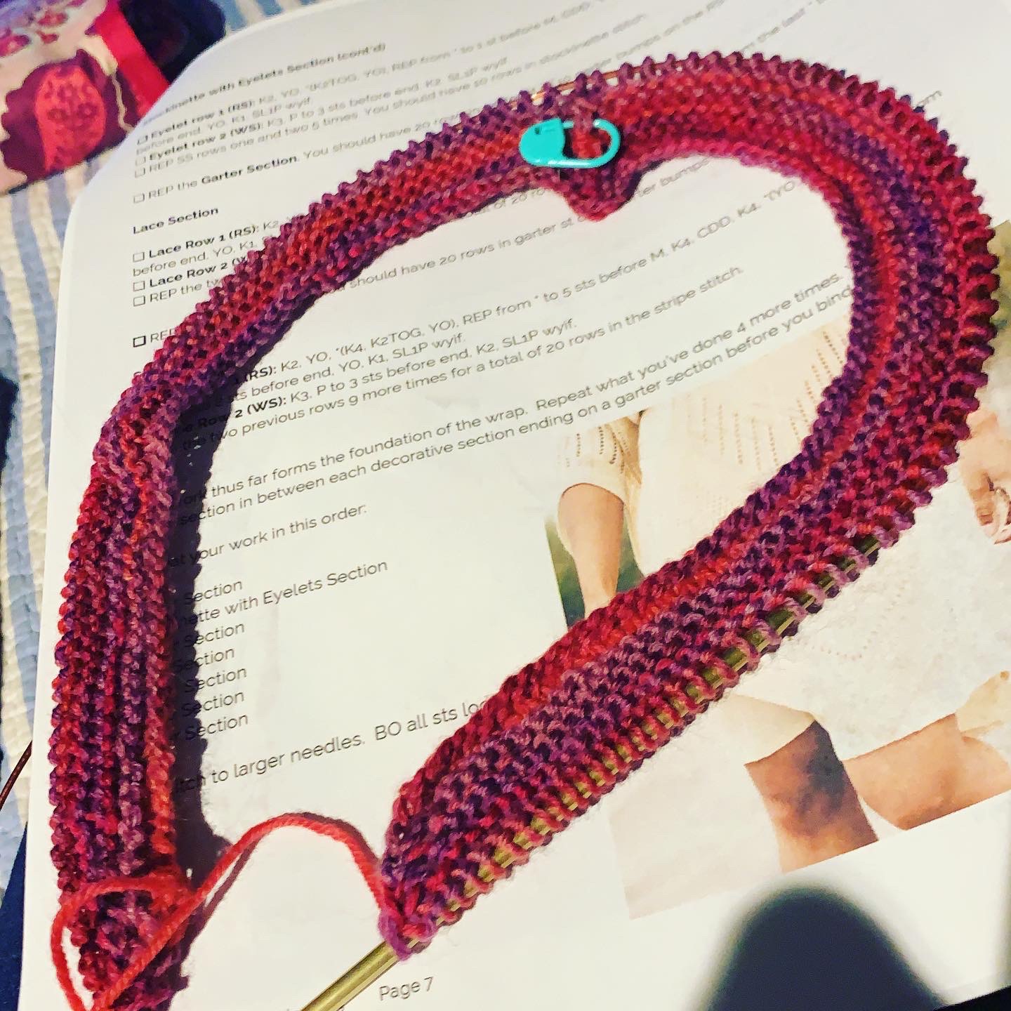 Knitting gives me so much joy, I love making things, learning new techniques, handling the beautiful yarns, enjoying the feel and the colors. I joined a knit along for a pattern I bought last spring called Moving Forward Wrap. It seems appropriate for the time, an arrow shaped wrap with a variety of lace and garter stitches. I happened to have a great yarn in my stash just waiting for a project, a lovely handpainted merino wool sock yarn from Knit Picks. I look forward to sharing in the zoom calls and online group as we all make this wrap together and contemplate moving forward out of this dark pandemic, heat, fire, protests, political disaster, into a new world where we are more kind, authentic and caring with each other.