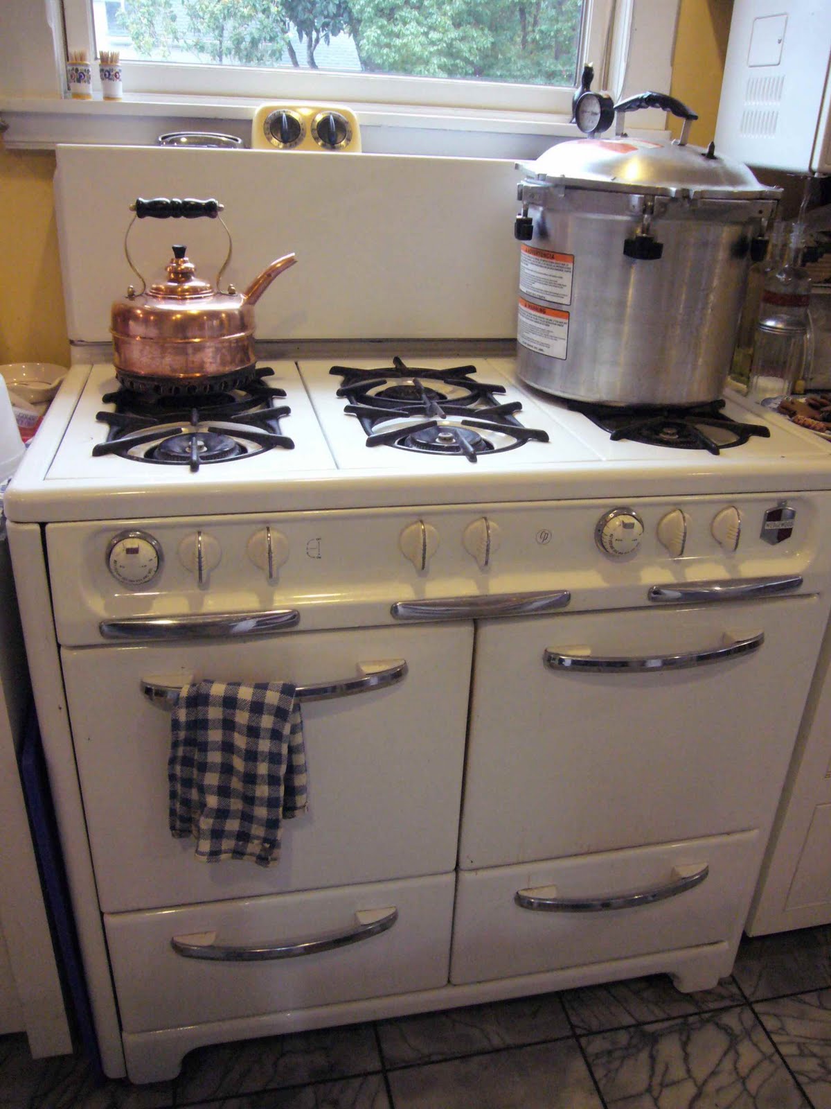 The story begins actually before we were married. Brian and I like old things, we live in an old Victorian that we are still rehabbing, after all. Twenty two years ago our church was remodeling their building and was getting rid of the old stove from the 1940’s. It is a Wedgewood 6 burner, two oven, two broiler model. We put our name on the list to get it but we were #10 or 12 and didn’t really think they would call us. One day they did call us at work to say that if we could get over there and remove the stove before the end of the day it was ours. So we bugged out of work, got the pick up truck and dragged it home. It was the quintessential “used by little old ladies on Sundays” item and was in remarkable shape. We cleaned it up and stored it in our garage for a couple of years while we got married and bought our house and got enough of the remodel done that we could move in. It has been serving us faithfully ever since.